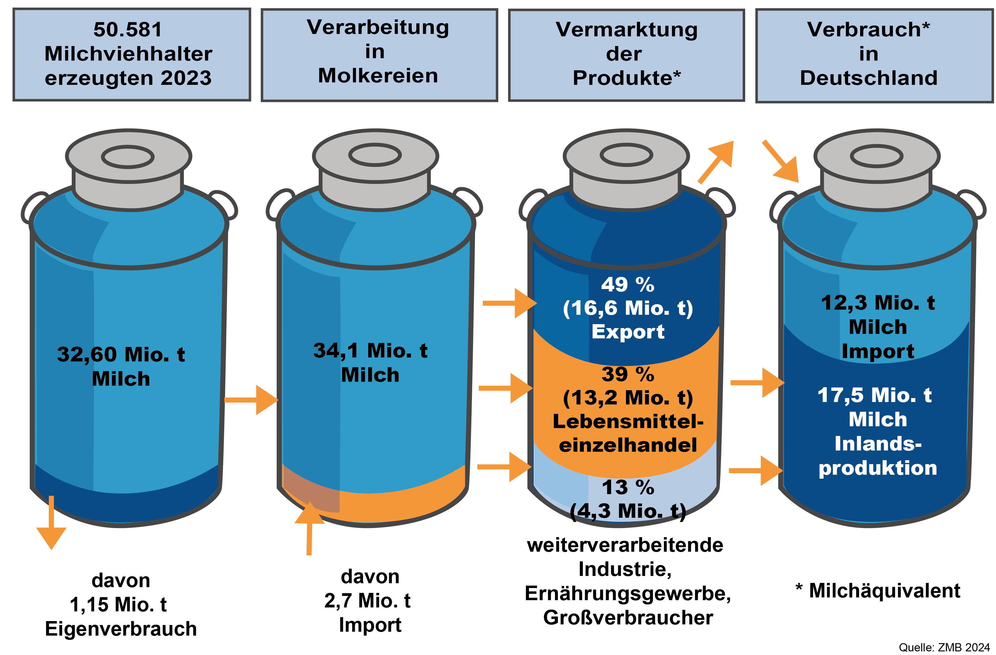 Einige Eckdaten zu den Export- und Importen stellen wir Ihnen gerne im öffentlichen Bereich unserer Seite zur Verfügung. So finden Sie auf dieser Seite die Mengen der deutschen Ex- und Importe für bestimmte Milchprodukte. Ausführliche Informationen zu der Exportabwicklung in verschiedene Drittländer oder auch Länderberichte stehen jedoch nur unseren Mitgliedern im geschlossenen Bereich zur Verfügung.
